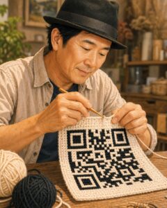 そこで思いついたのが、かぎ針編みのQRコードだった。