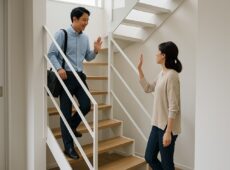 木造階段に付く鋼製手摺の数々 (サトウ工務店 施工)