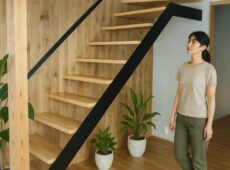 鉄骨桁×浮遊感ステップがつくる、解放感のあるリビング階段