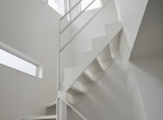 シンプル&シャープな白い階段が主役のエントランスホール